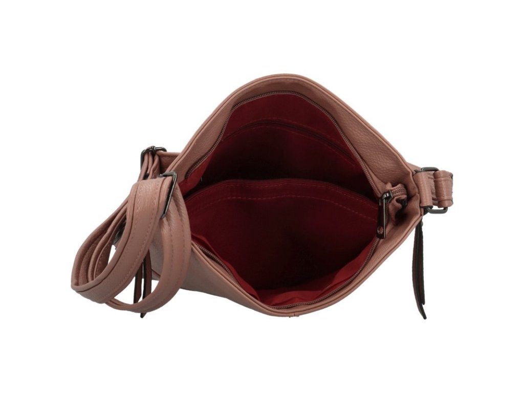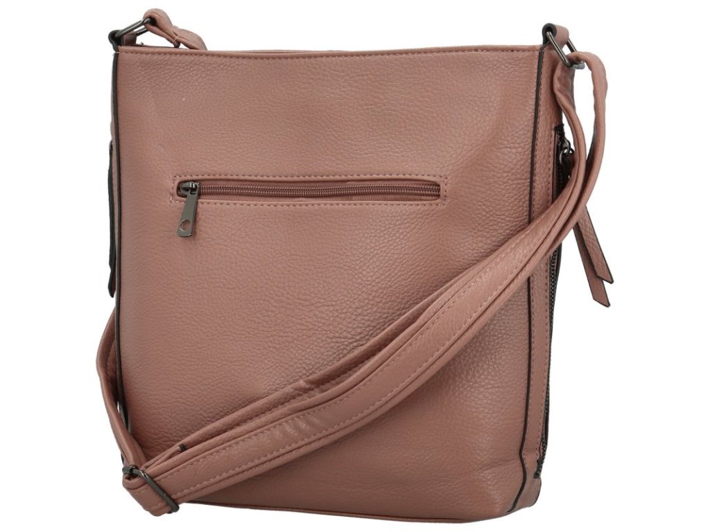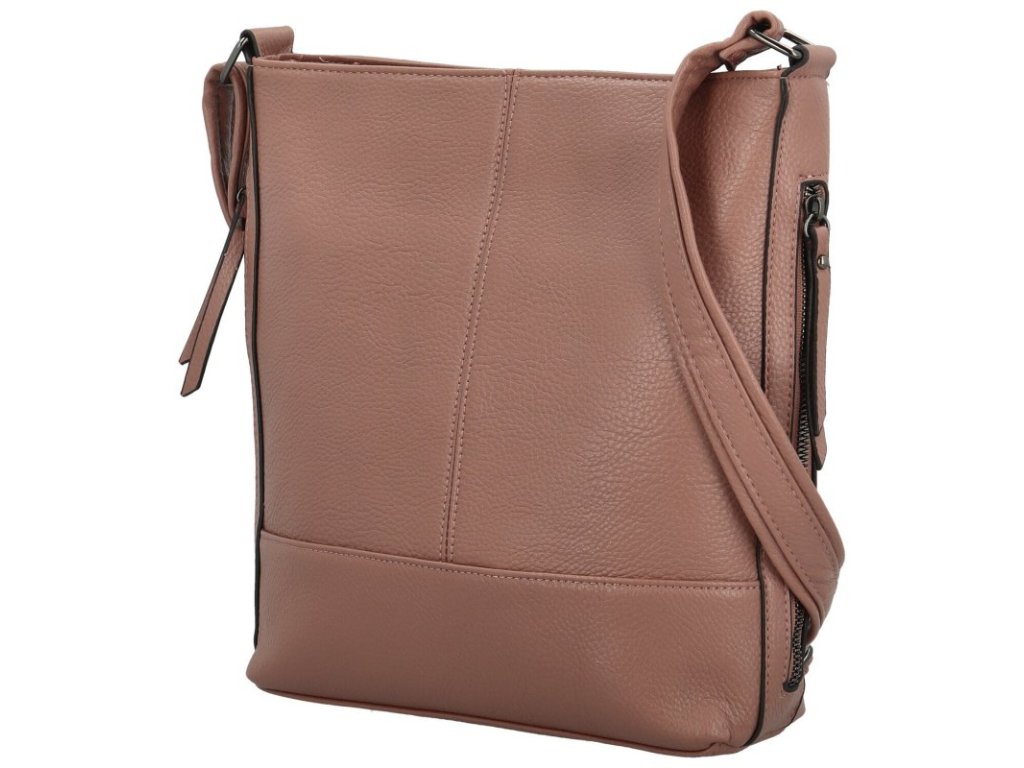Přední část zdobí jemné prošití a postranní okrasné zipy, jež kabelce dodávají originální vzhled.