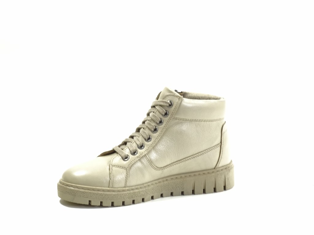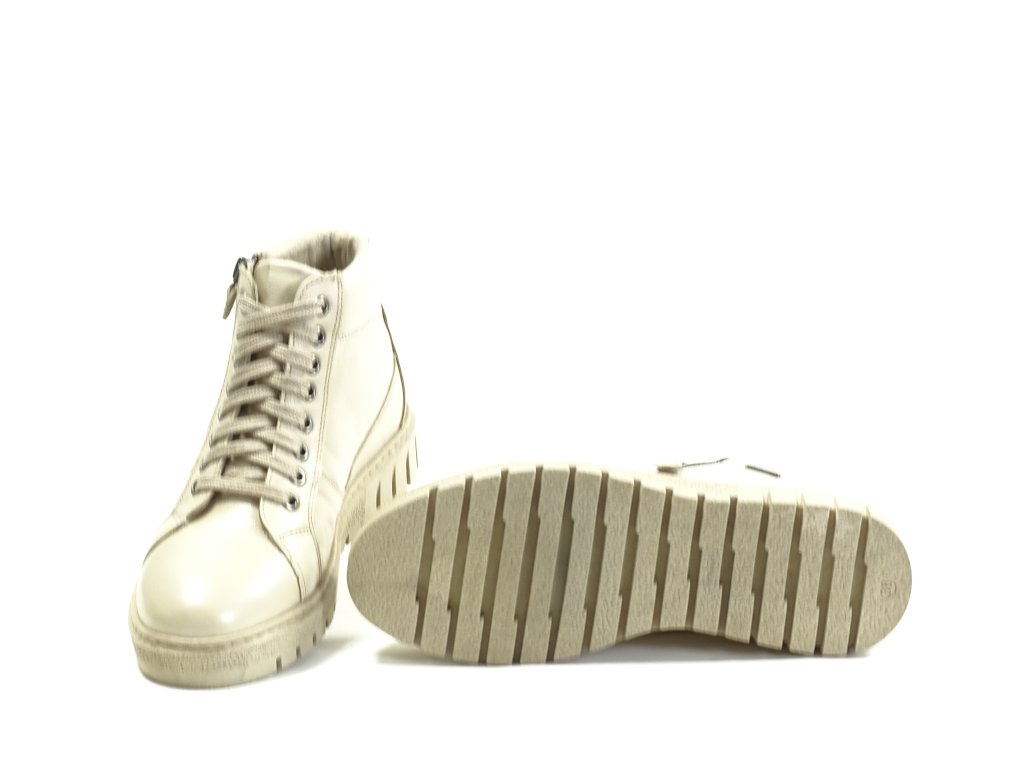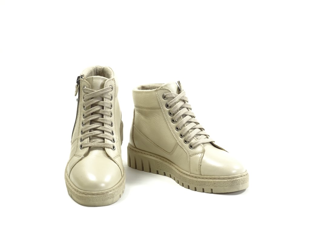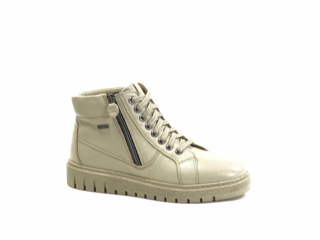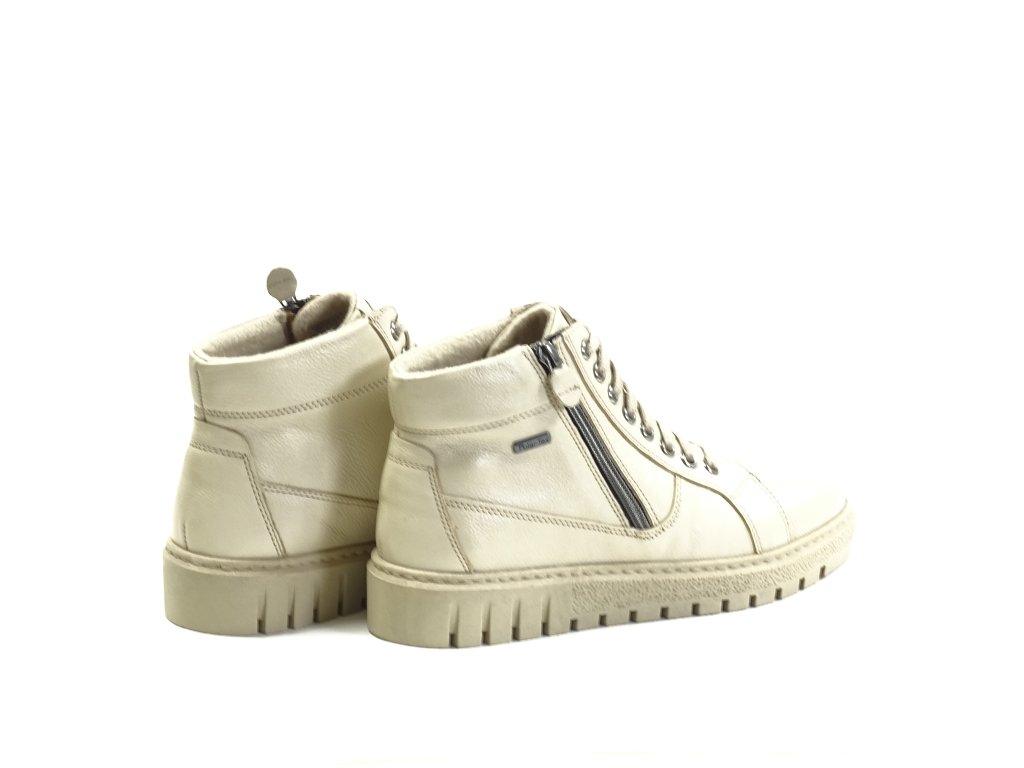 Tato dámská zimní obuv se vyznačuje kombinací béžové kůže s membránou POLAR-TEX, která zaručuje lehké zateplení a ochranu před vlhkostí. Elegantní design podtrhují jemné prošívání a praktické kombinované zapínání na šněrování a zip, které usnadňuje obouvání. Pohodlí zajišťuje velmi vyměkčená a vyjímatelná stélka, takže boty jsou ideální pro celodenní nošení během chladnějších dní.