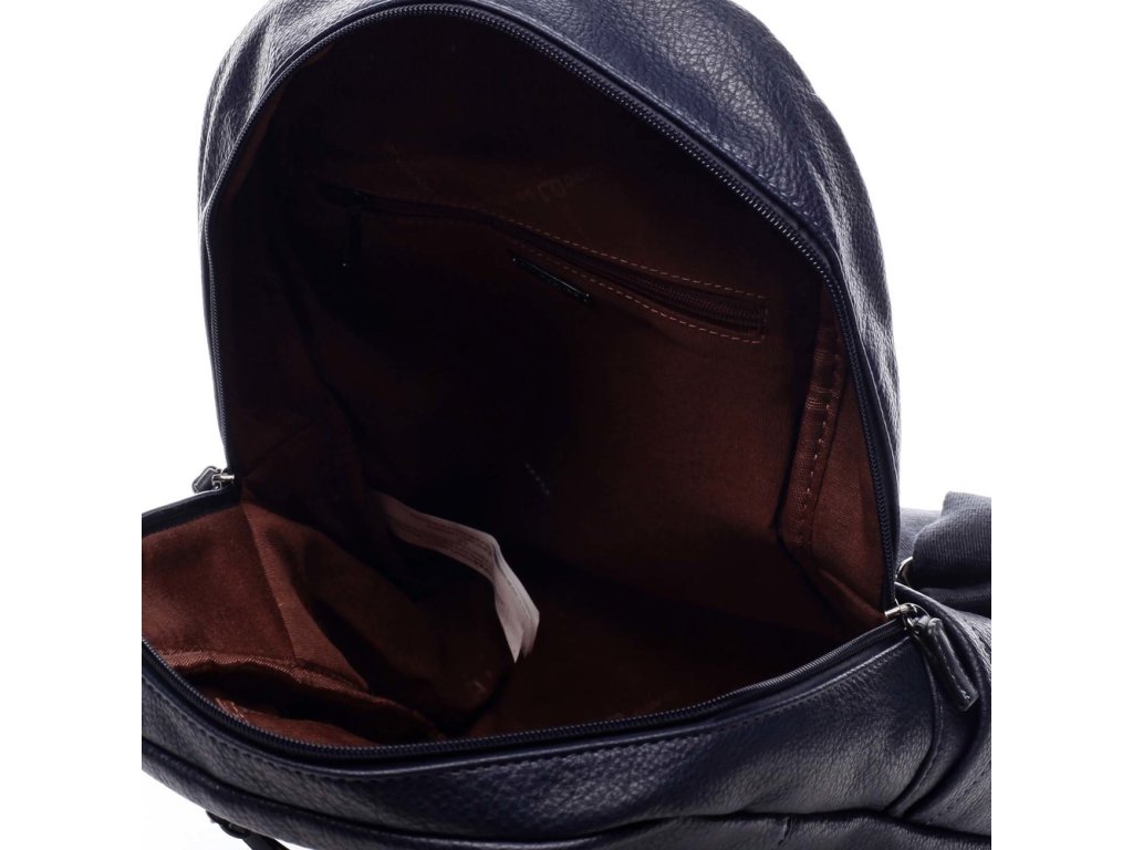 Středně velký, tmavě modrý, městský, originální batoh pro ženy.