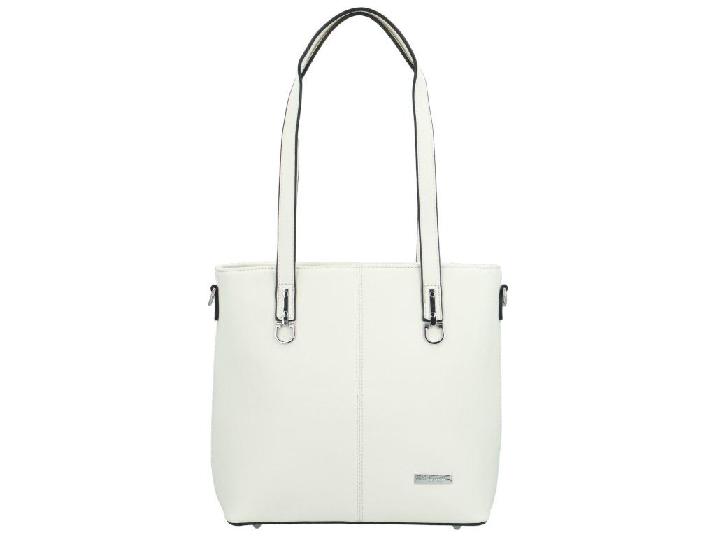 Kabelku doplňuje tmavě stříbrné kování a doplňky v podobě loga značky na přední straně a ozdob na konci uších.
