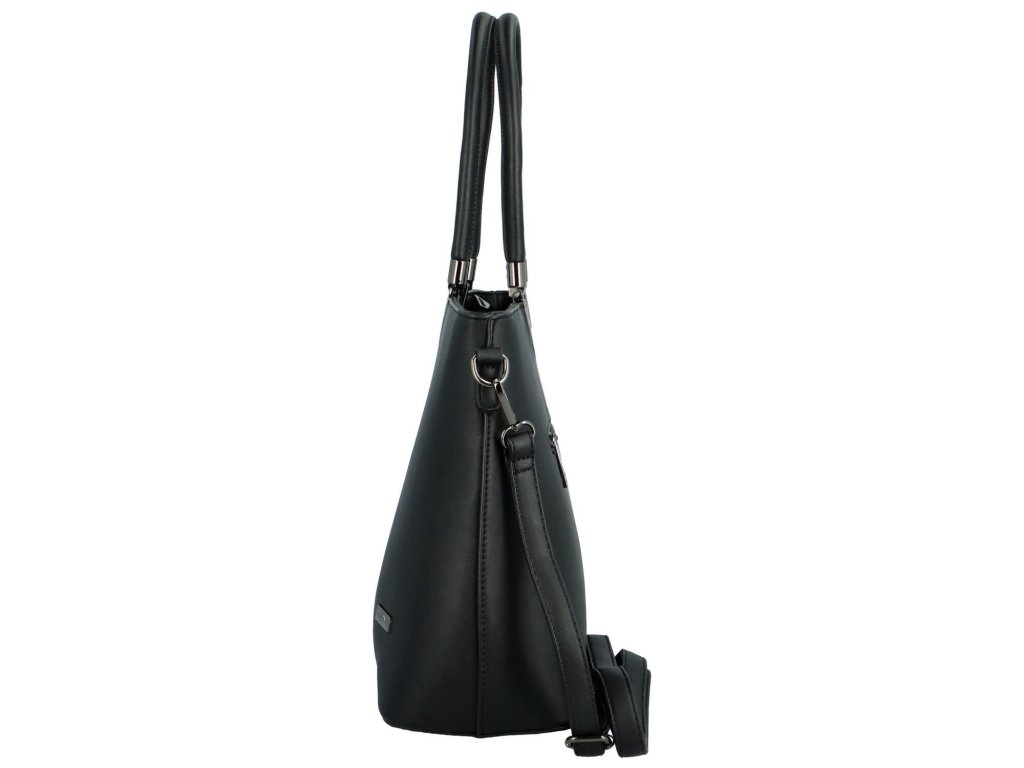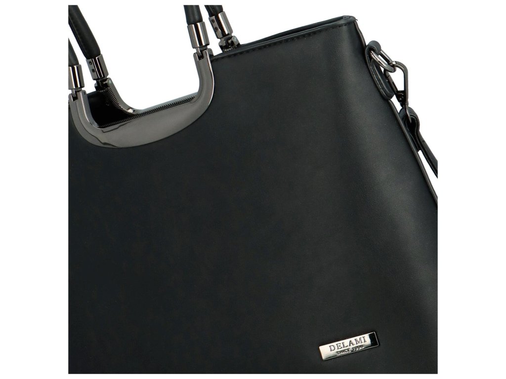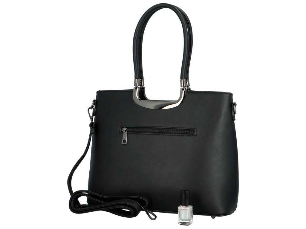 Určitě vás zaujme kovový doplněk v tmavě stříbrné barvě, který spojuje pevné uši kabelky.