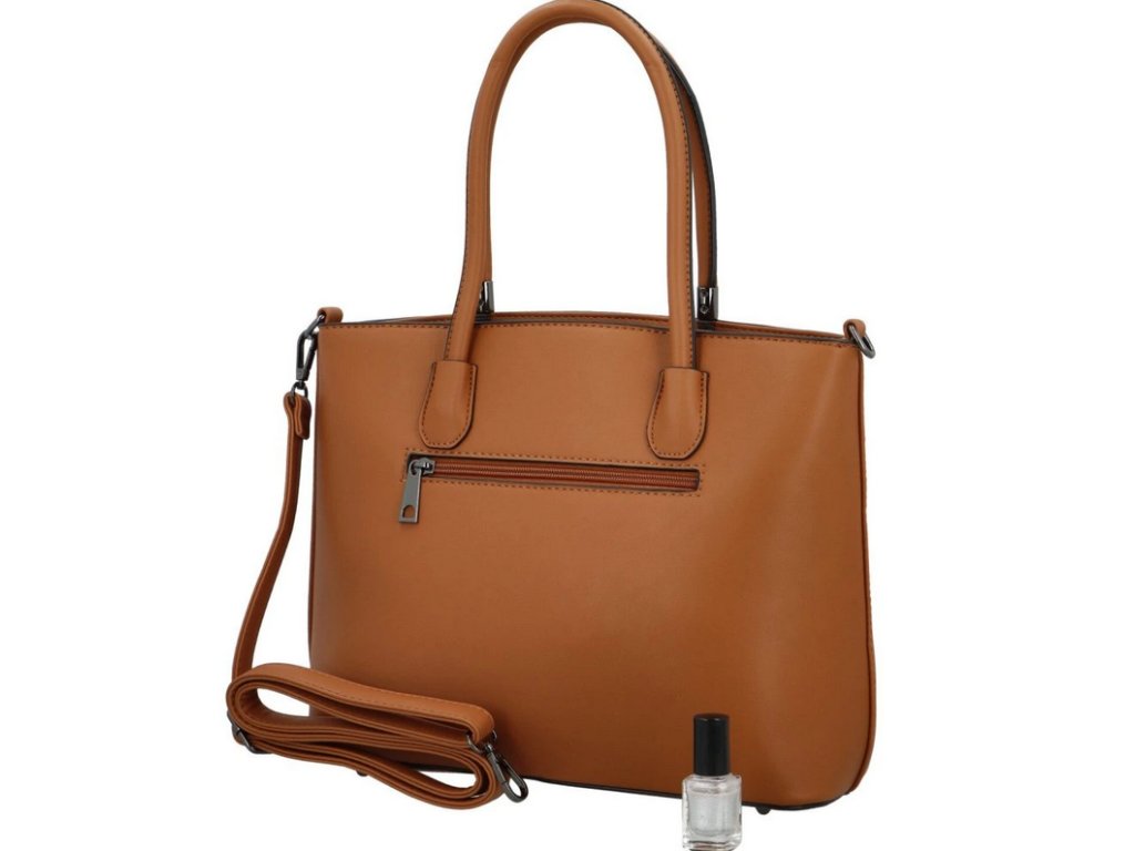 Kabelka disponuje pevnými uchy, které skvěle padnou do ruky, pro nošení na rameni vám poslouží dlouhý, přídavný popruh, kterému se dá regulovat délka.