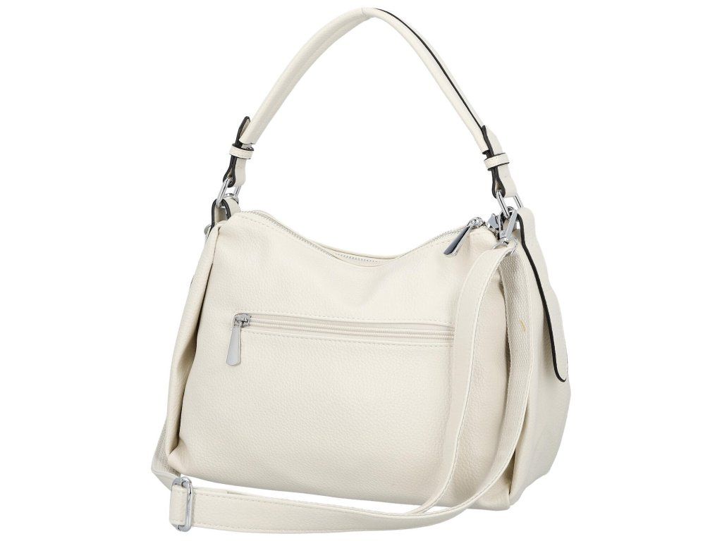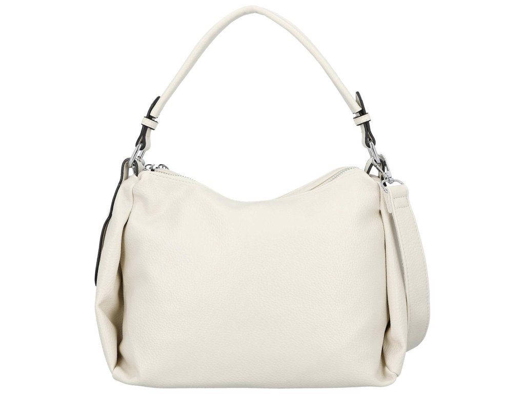 Tato kabelka přes rameno z jemně strukturovaného materiálu zaujme čistým designem a měkkým, poddajným tvarem.