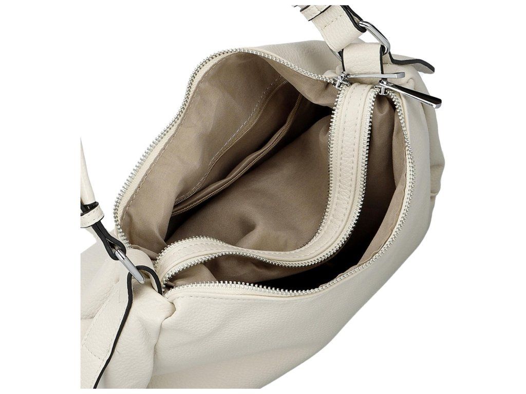 Vnitřní prostor je prakticky řešený – kabelka je rozdělena na dvě samostatné komory oddělené kapsou na zip, která pomáhá udržet věci přehledně uspořádané a zároveň poskytuje bezpečné místo pro cennosti.