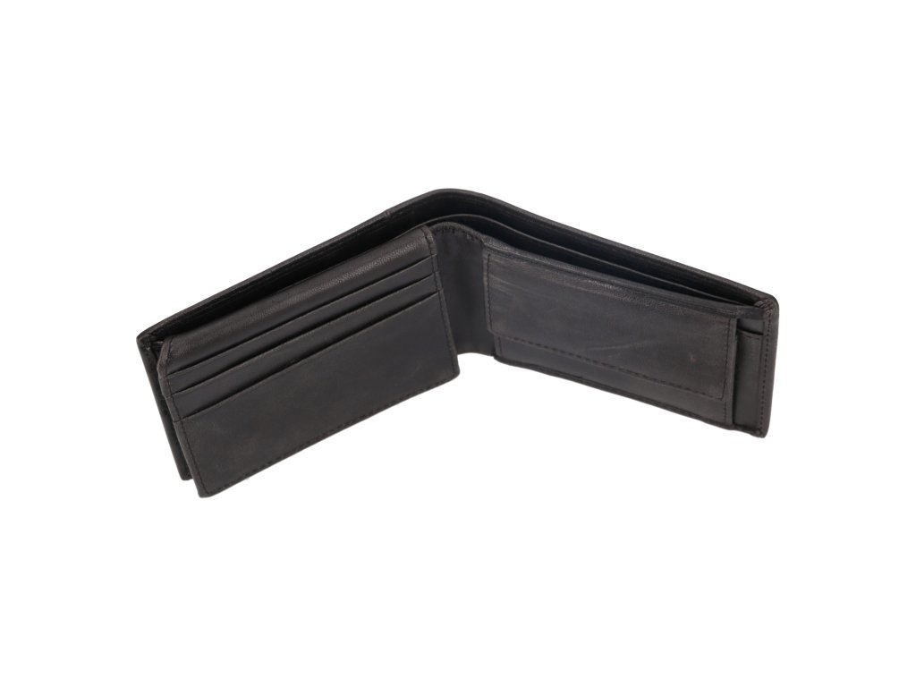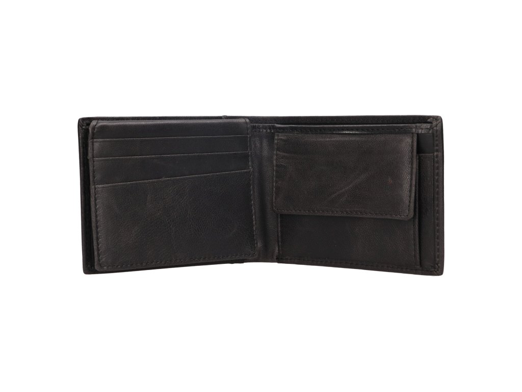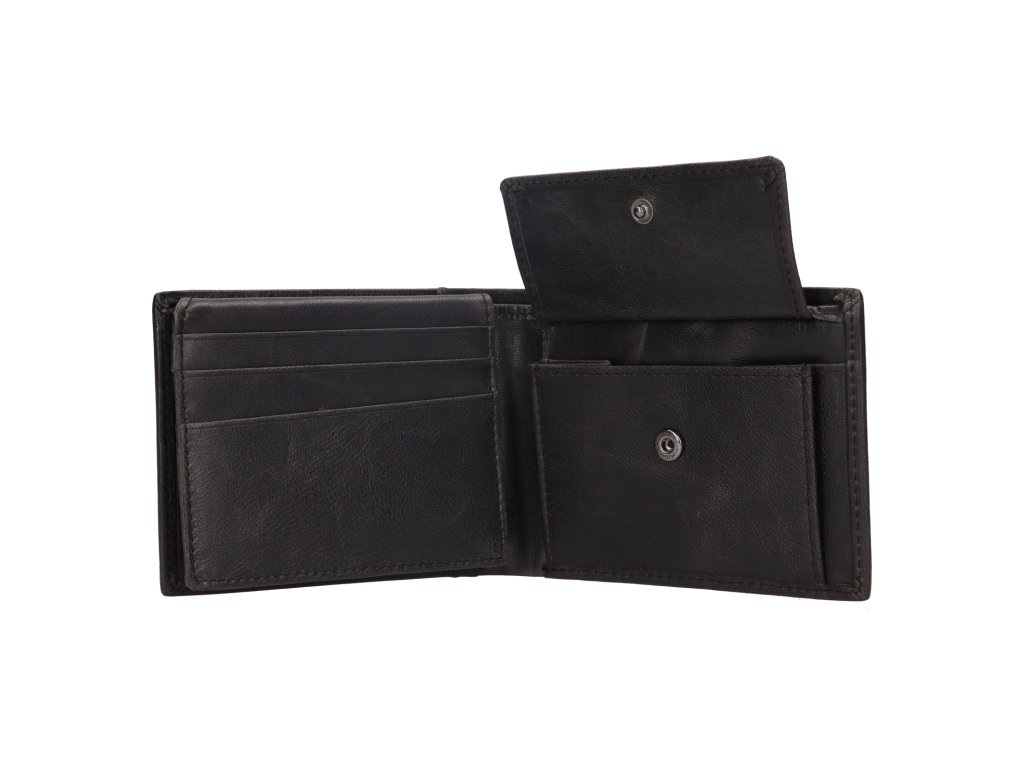 Výbava peněženky: 2x oddělení na bankovky, 6x přihrádka na karty a vizitky, 3x přihrádka na doklady, 1x mincovník se zapínáním na patent.