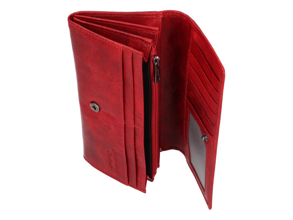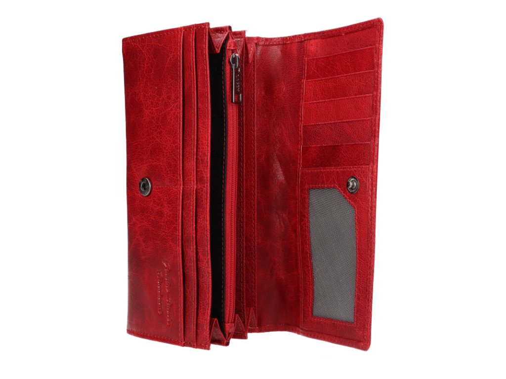 Peněženka má na přední straně logo výrobce, uvnitř má 3 fochy na bankovky, 2 fochy na doklady, 14 přihrádek na kreditní karty.