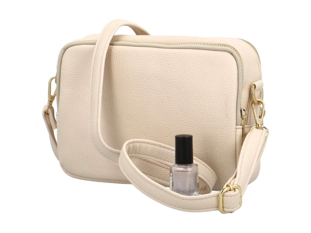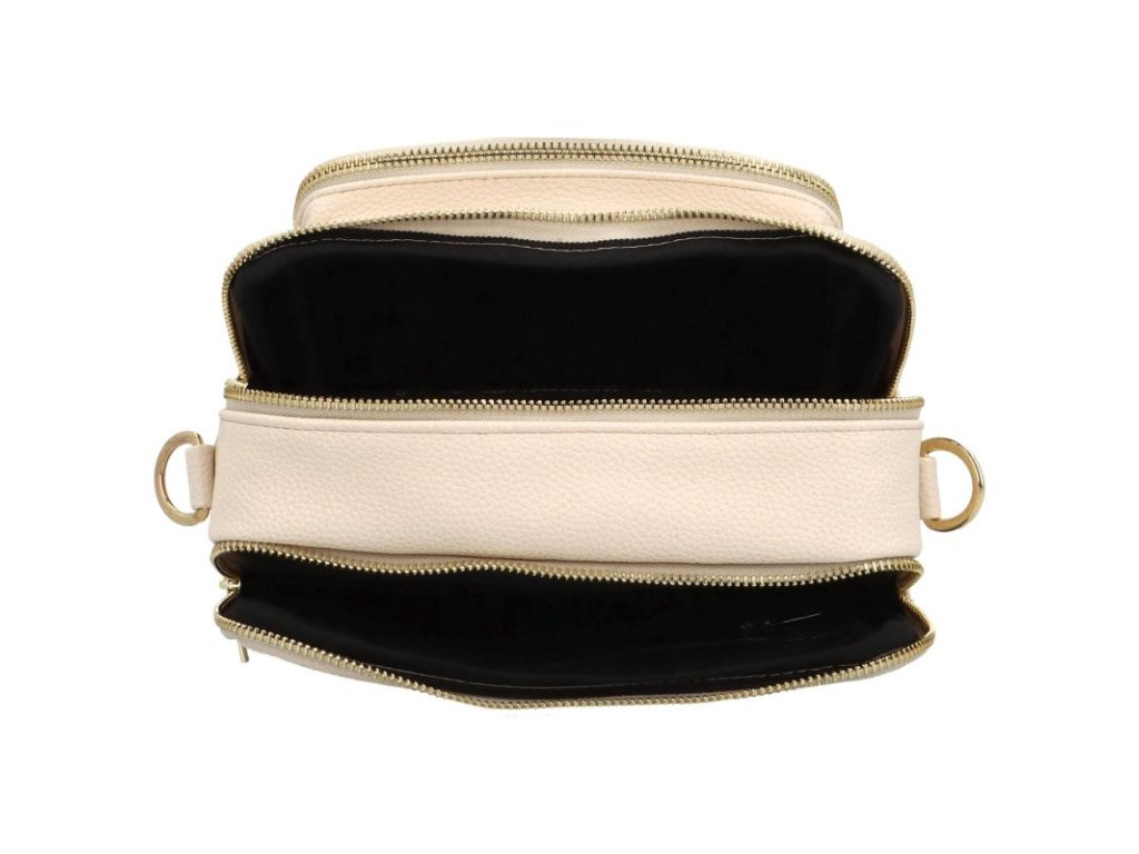 Crossbody má hlavní kapsu na zip a uvnitř postranní kapsičky.