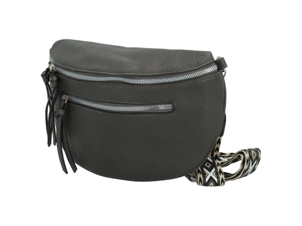 Široký textilní popruh je barevně sladěn s odstínem ledvinky, zajišťuje pohodlné nošení a lze jej snadno odepnout.