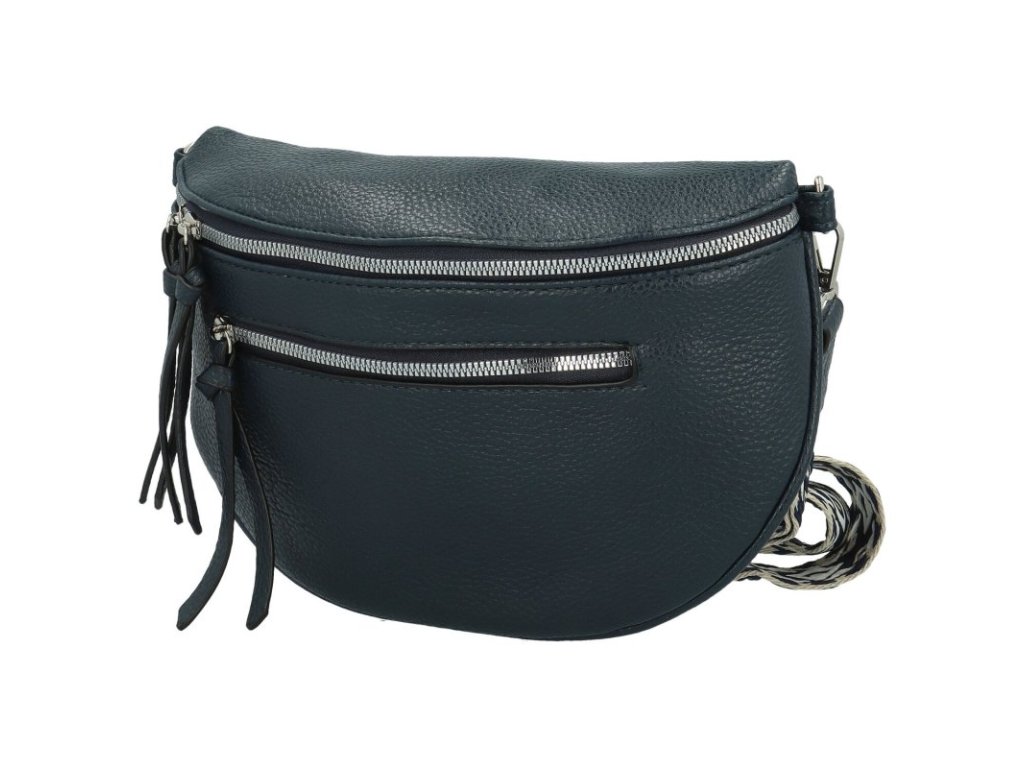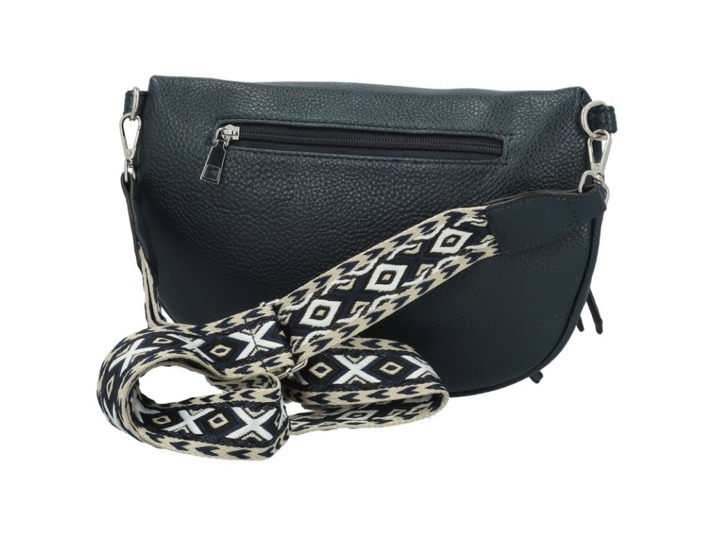 Široký textilní popruh je barevně sladěn s odstínem ledvinky, zajišťuje pohodlné nošení a lze jej snadno odepnout.