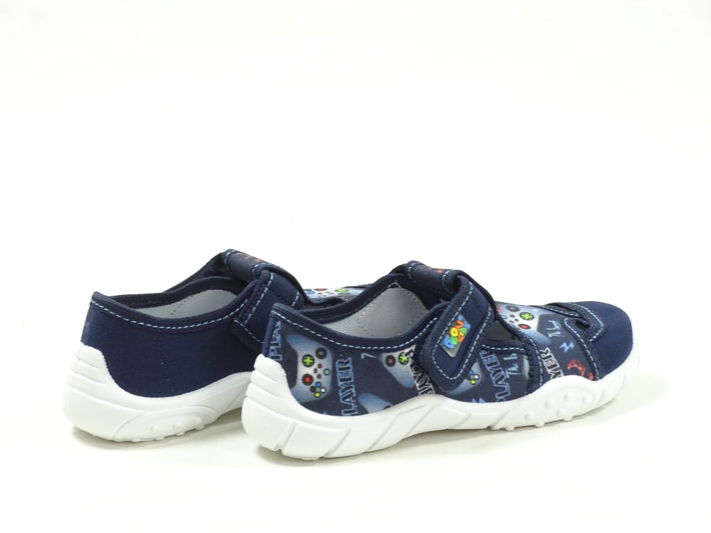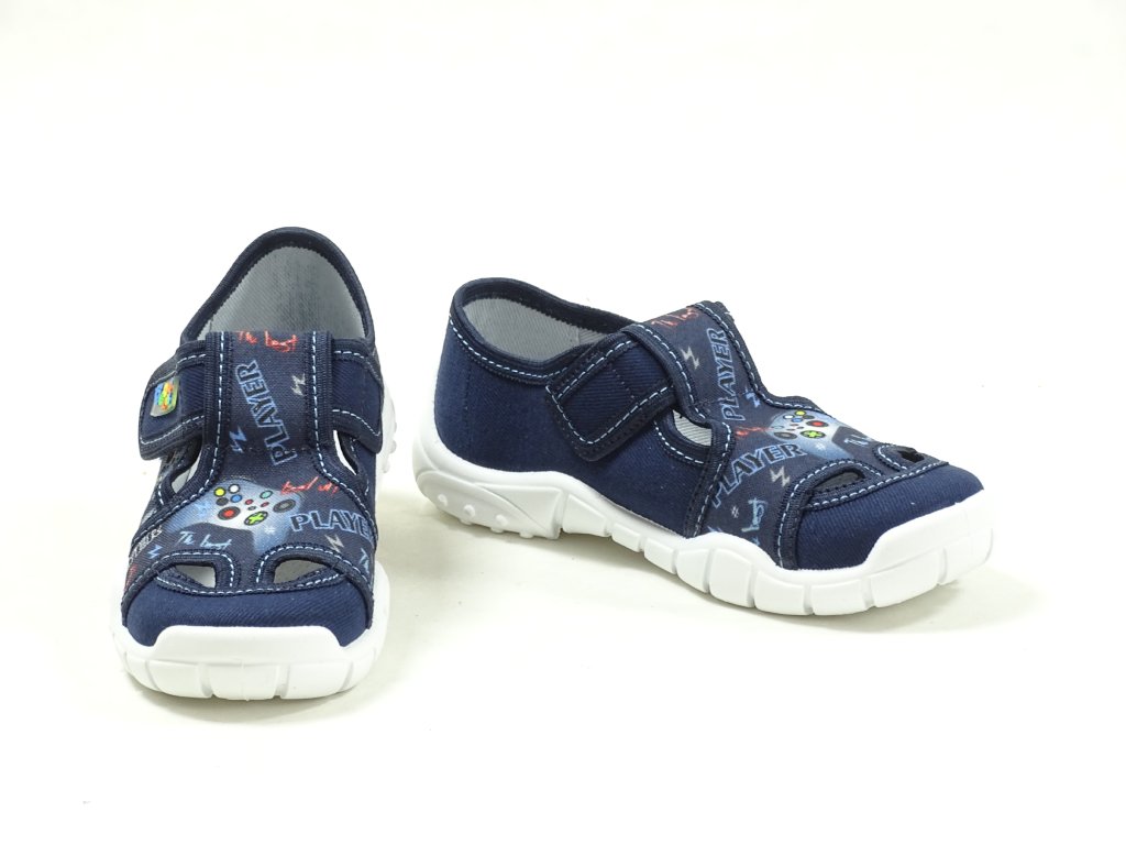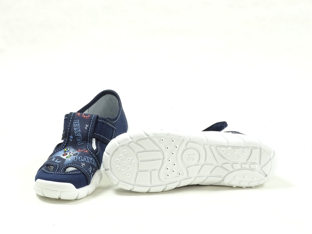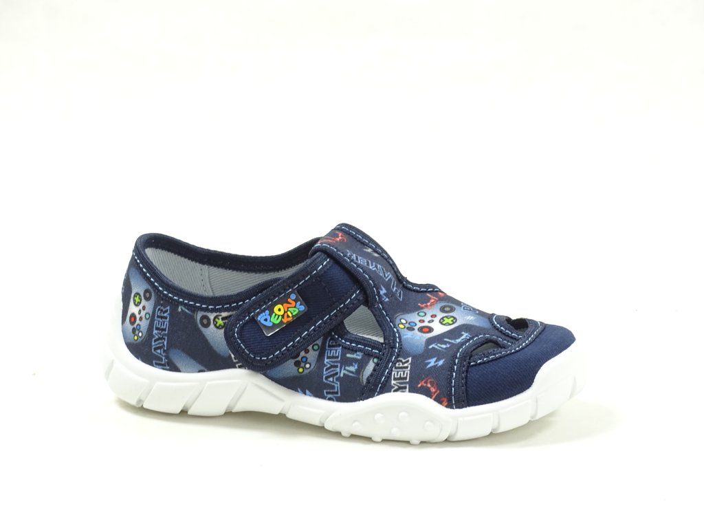 Chlapecké papučky pro radostné skákání a pohodlné domácí nošení. Kvalitní materiály, jako textil a kožená stélka s aktivním uhlím proti bakteriím, zajišťují zdravé a hygienické prostředí pro nohy vašeho malého šampióna. Díky upínacímu pásku na suchý zip jsou tyto přezůvky snadno a rychle nazouvány, ideální volba pro školní nošení či hravé dny doma. Odolná podešev proti uklouznutí a prodyšná konstrukce s drobnými otvory ve strojované stélce dodávají botám prvotřídní komfort a pohodlí. Modrá barva a trendy design jistě potěší malého módního nadšence.