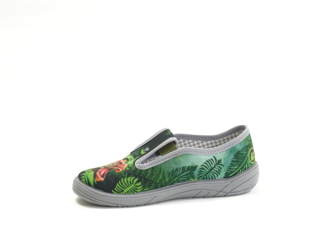 Dětské chlapecké papučky s textilním vrchovým materiálem vynikají snadností nazouvání díky široké gumičce. Ortopedická kožená stélka, vyměkčená a vyjímatelná, je navržena pro zdravé nošení a pohodlí po celý den. Podešev s protiskluzovými vlastnostmi a drobnými otvory zajišťuje prodyšnost a bezpečnou chůzi, což je ideální volbou pro každodenní nošení ve školce nebo doma.