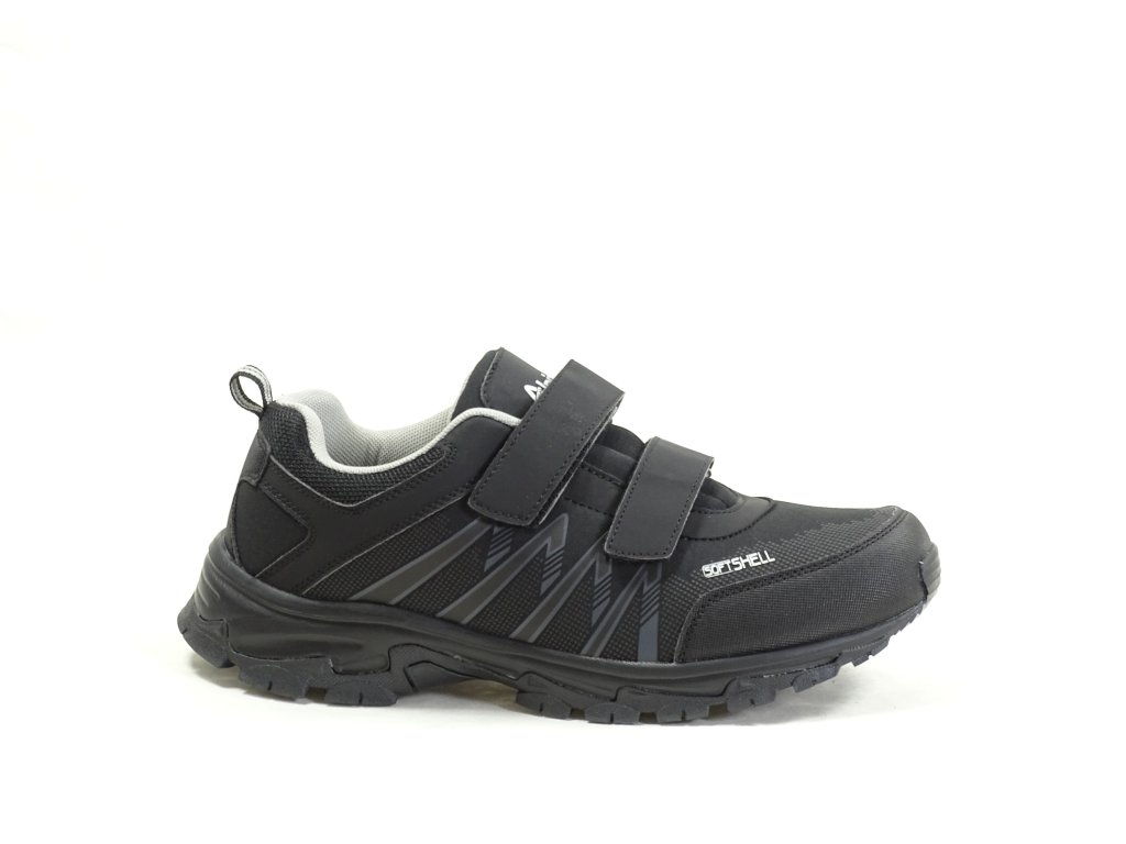 Tato sportovní dámská obuv je ideální volbou pro každodenní nošení i aktivní životní styl, díky nepromokavému softshellovému materiálu, který je lehký, pružný a prodyšný. Praktické zapínání na suchý zip a vypolstrovaná oblast kolem kotníku zajišťují pohodlí a stabilitu při každém kroku. Trendy černý design a masivní podrážka s výrazným vzorkem poslouží nejen v městském prostředí, ale i na výletech do přírody.