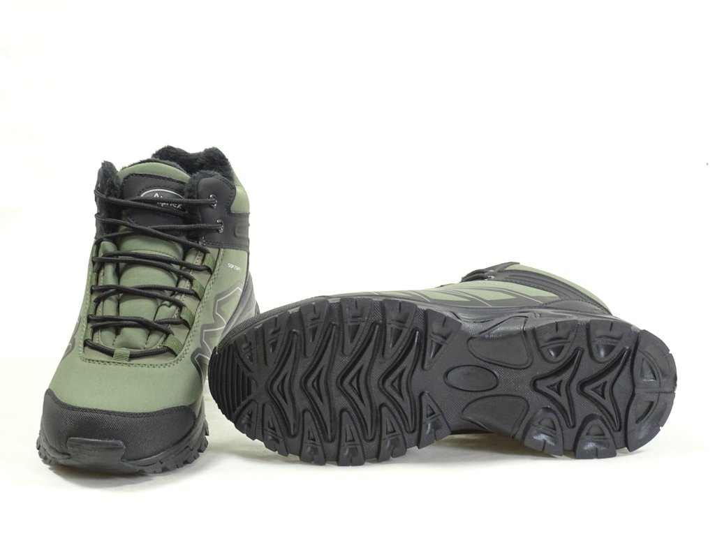 Dámská zimní softshellová obuv v trendy khaki barvě kombinuje komfort s praktickými vlastnostmi. Díky nepromokavému materiálu softshell s membránou a kožíškem uvnitř boty poskytují teplo a suchost i v chladném a vlhkém počasí. Šněrování zajišťuje stabilní uchycení, zatímco vyměkčená, vyjímatelná stélka a lehká syntetická podešev podporují pohodlí při celodenním nošení.