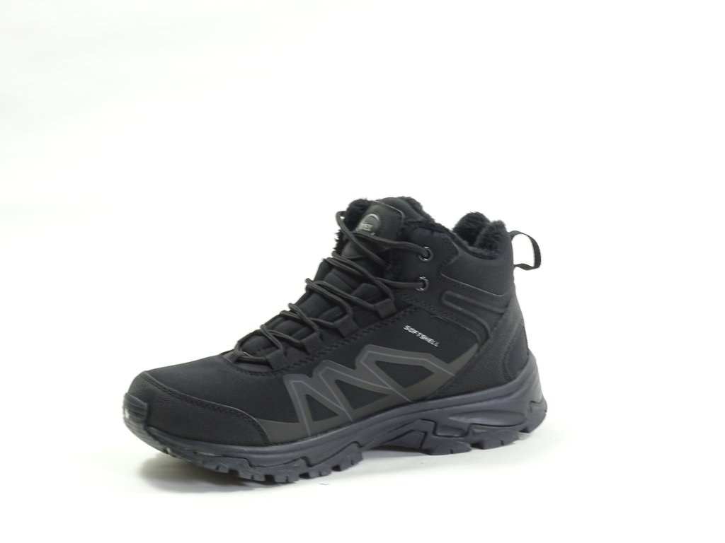 Dámská zimní softshellová obuv v trendy černé barvě kombinuje komfort s praktickými vlastnostmi. Díky nepromokavému materiálu softshell s membránou a kožíškem uvnitř boty poskytují teplo a suchost i v chladném a vlhkém počasí. Šněrování zajišťuje stabilní uchycení, zatímco vyměkčená, vyjímatelná stélka a lehká syntetická podešev podporují pohodlí při celodenním nošení.