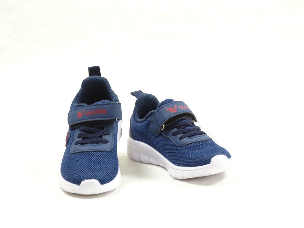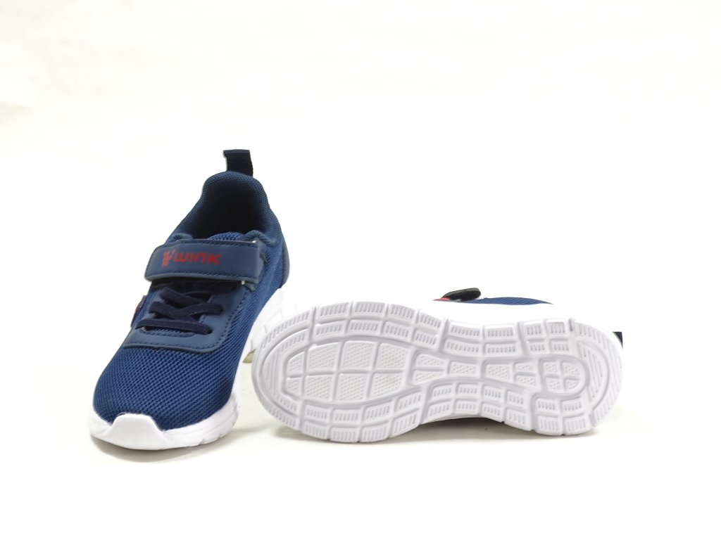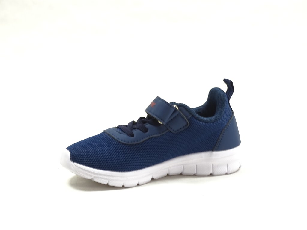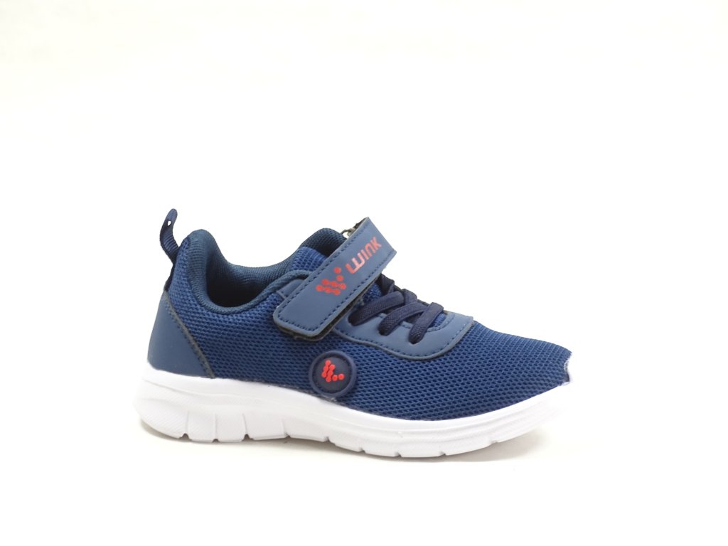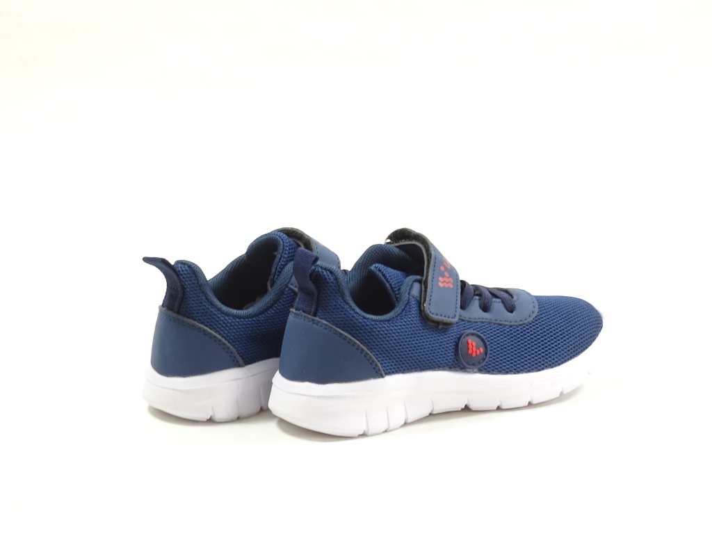 Dětské celoroční boty sportovního vzhledu s pružným gumičkovým provázáním a pevným suchým zipem pro maximální fixaci nohy. Jsou vyrobeny z kvalitního textilního materiálu v kombinaci modré a červené barvy. Vyměkčená a vyjímatelná stélka zvyšuje komfort nošení, zatímco bílá podešev umožňuje využití i jako sálová obuv.