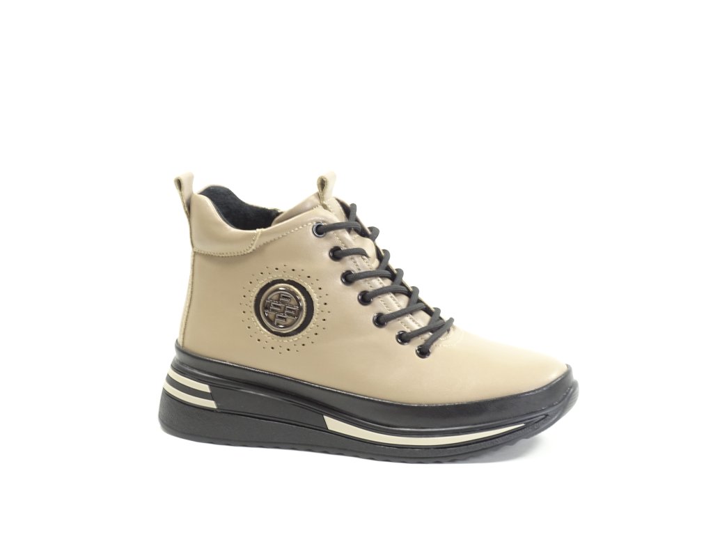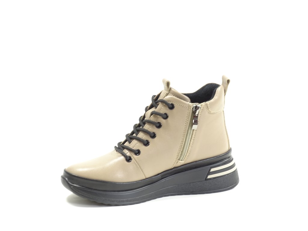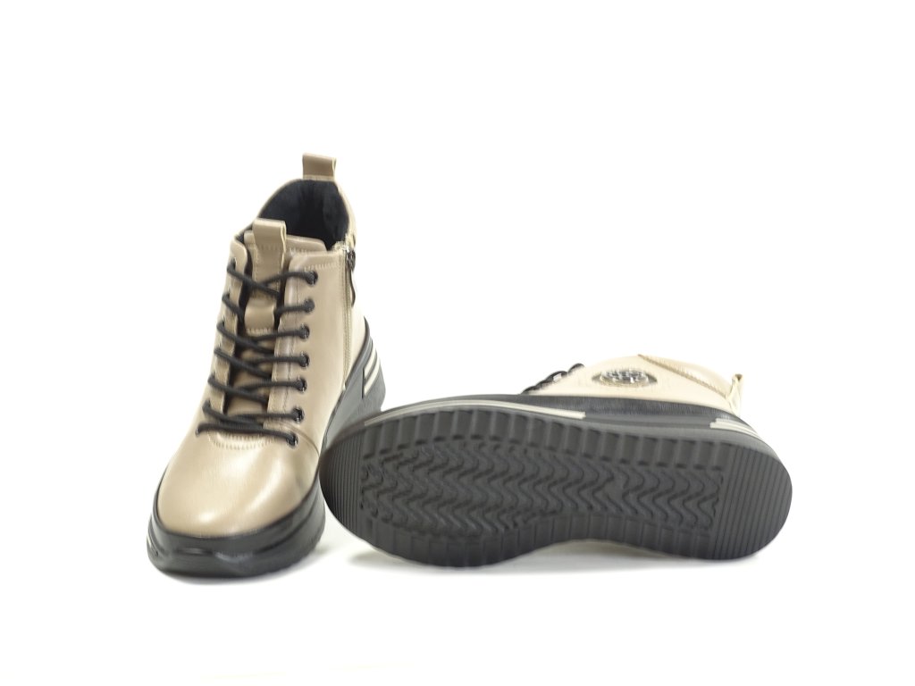 Kotníkové boty od značky SC+S v béžové barvě kombinují moderní design s prvotřídním pohodlím díky vyšší sportovní podešvi o výšce 5 cm a vyměkčené, vyjímatelné stélce. Svršek z kvalitní kůže a praktické zapínání na šněrování a zip zajišťují snadné obutí i stylový vzhled. Boty jsou ideální volbou pro každodenní nošení, ať už do práce nebo na procházky, a vynikají lehkostí a schopností dokonale přizpůsobit se vašim nohou.