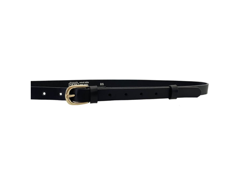 Černý dámský kožený opasek o šířce 20 mm má sponu s luxusní zlatou povrchovou úpravou.
