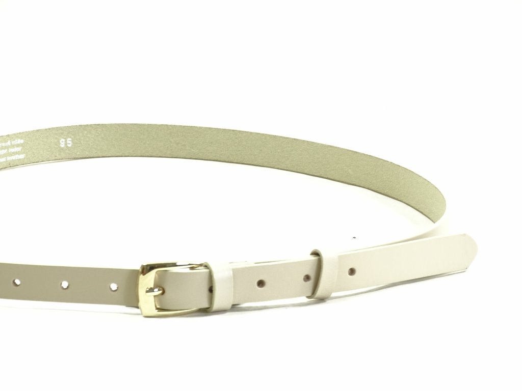 Pásek je vyrobený z hladké kůže v béžové barvě.