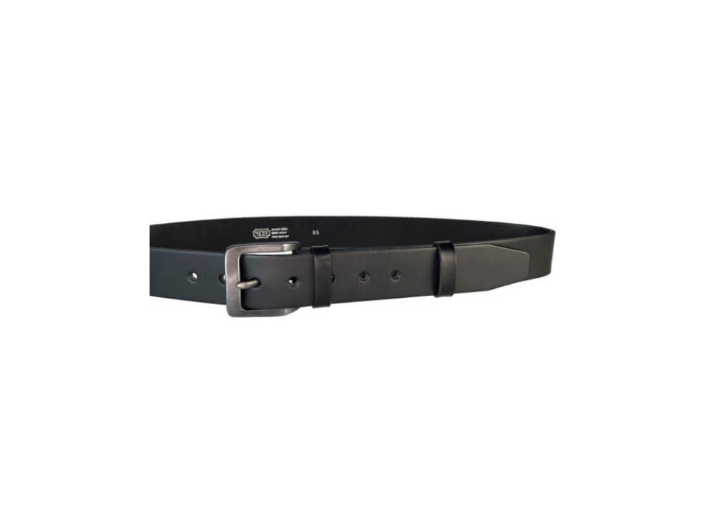 Nadrozměrný černý pánský kožený opasek o šířce 40 mm má zajímavou klasickou sponu s povrchovou úpravou černý nikl satinato (NKS).