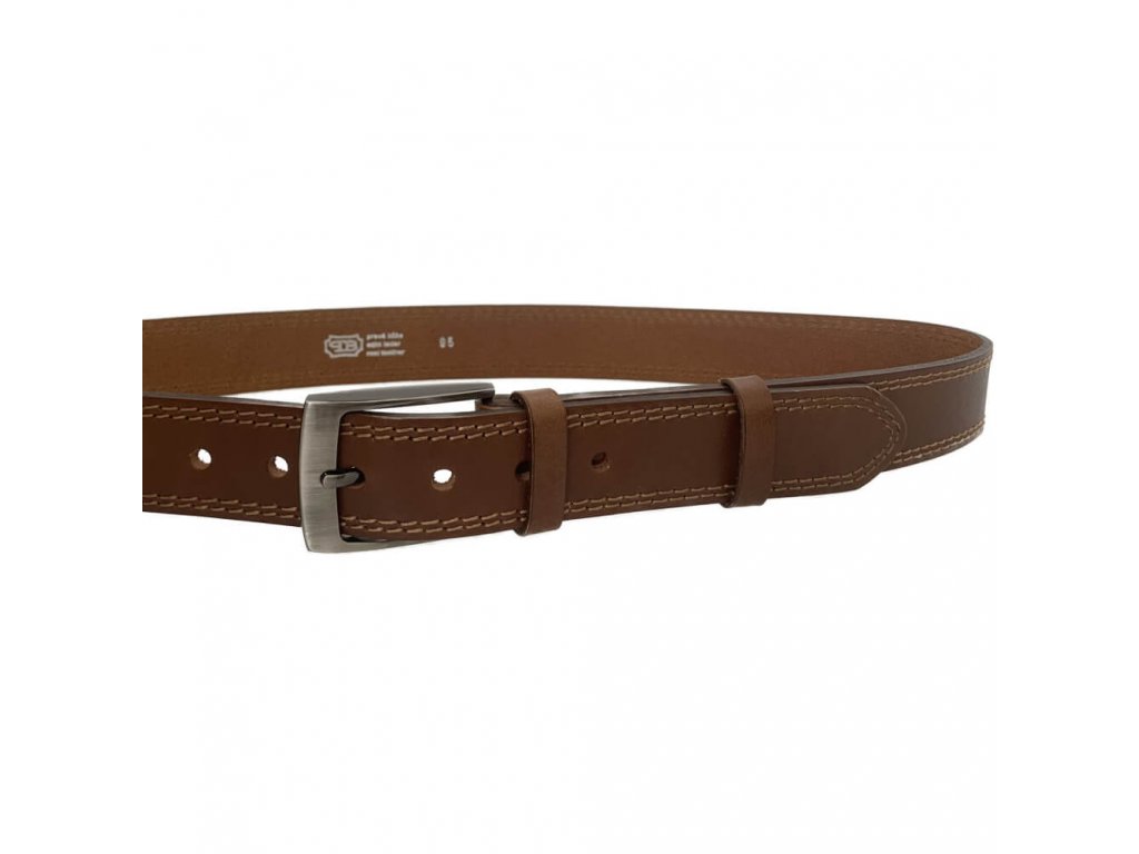 Nadrozměrný hnědý pánský kožený opasek o šířce 40 mm má zajímavou klasickou sponu s povrchovou úpravou nikl satinato (NKS).