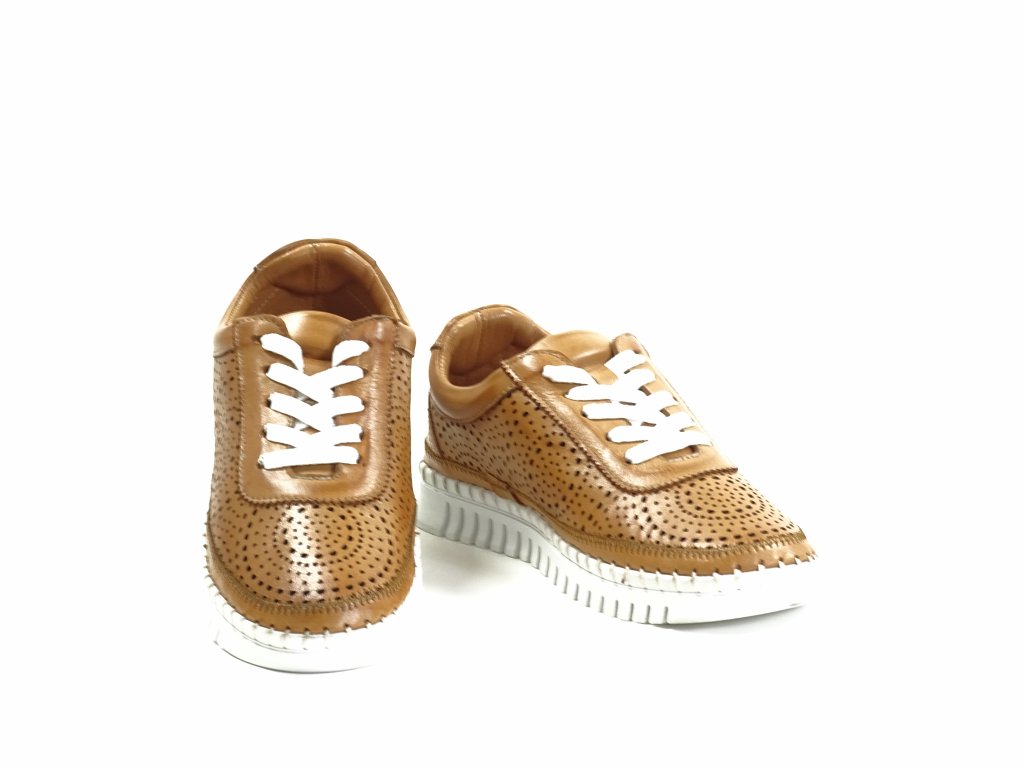 Dámské celoroční hnědé polobotky z vysoce kvalitní kůže kombinují sportovní styl se sofistikovaným designem, ideální pro každodenní nošení. Díky šněrování můžete obuv snadno přizpůsobit individuálním potřebám, což přispívá k maximálnímu pohodlí při chůzi. Ortopedická, vyměkčená a vyjímatelná kožená stélka zajišťuje zdravotní podporu pro celodenní komfort, zatímco elegantní klínek o výšce 3,5 cm dodává subtilní výšku a styl.