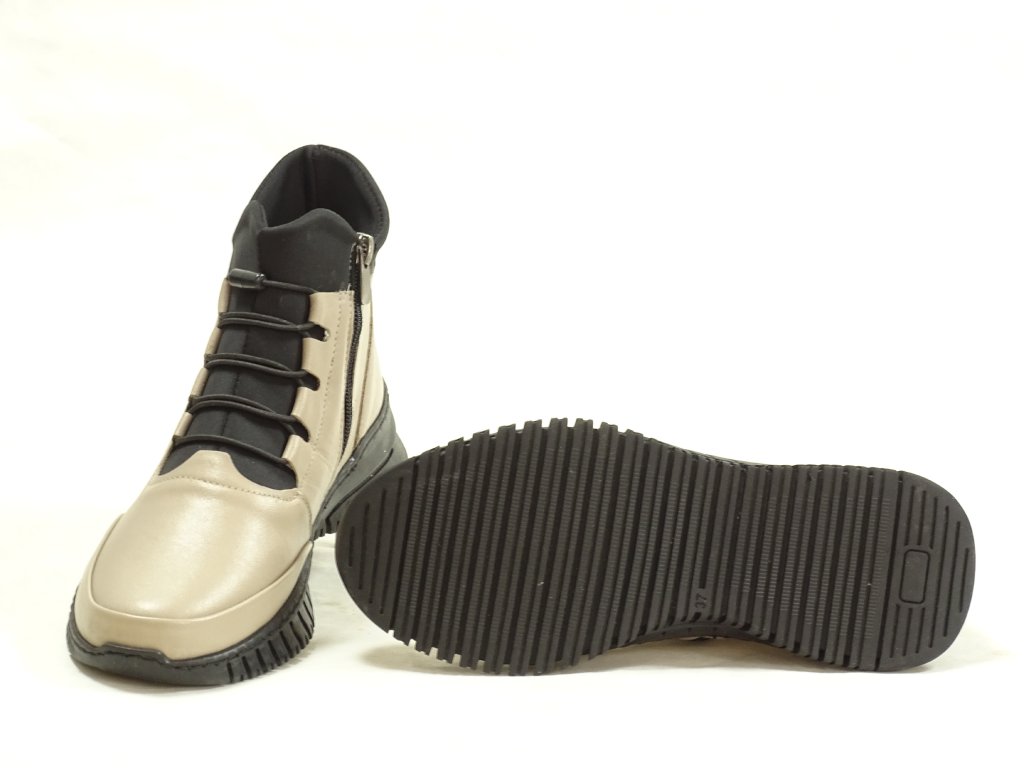 Dámská zimní obuv značky Quo Vadis vyniká svým moderním designem, který kombinuje béžovou kůži s praktickým gumičkovým šněrováním a zipem pro snadné nazouvání. Platforma o výšce 4 cm dodává botám elegantní vzhled, zatímco lehce hřejivá podšívka zajišťuje komfort během chladných dní. Vyměkčená a vyjímatelná stélka doplňuje jejich funkčnost a umožňuje individuální přizpůsobení, což ocení ženy hledající stylovou a pohodlnou přechodovou či zimní obuv.