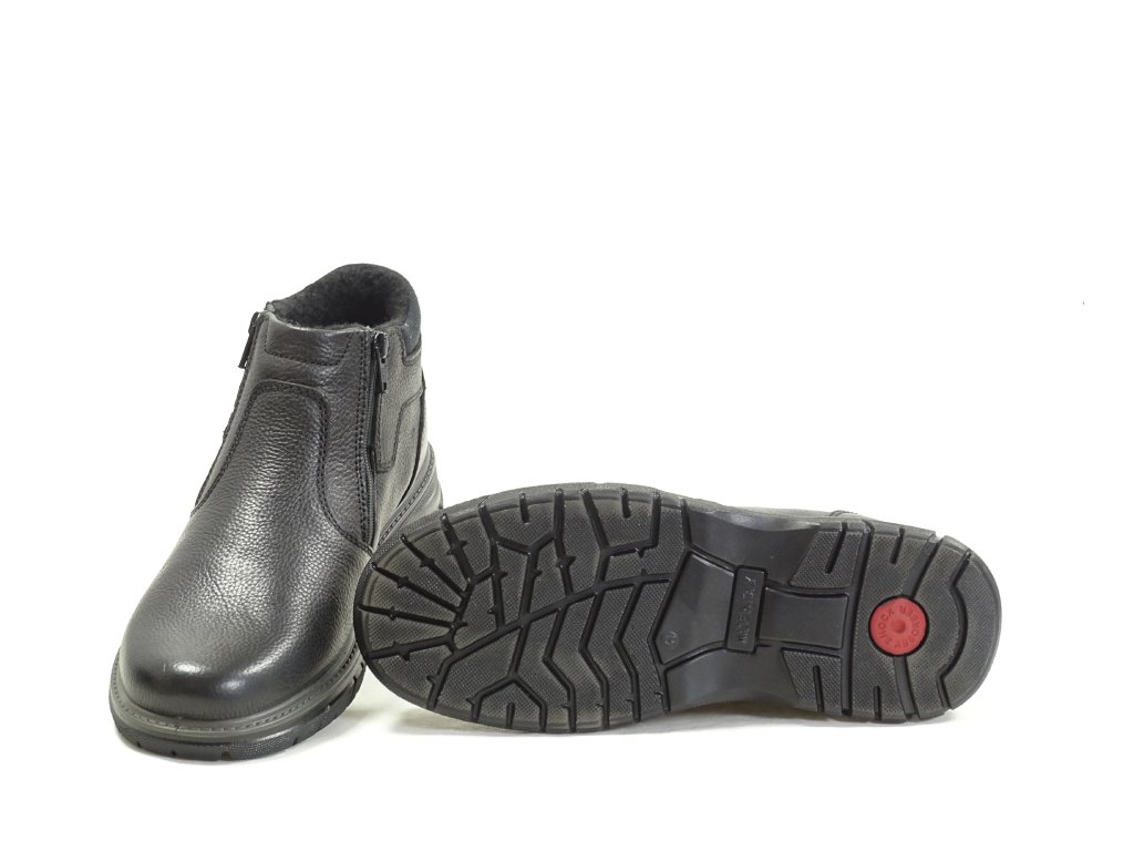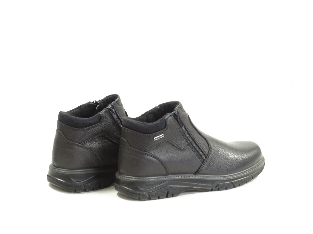 Elegantní pánské polobotky z černé kůže s membránou IMACTEX vás zaujmou svým stylovým prošitím a praktičností. Tyto boty jsou lehce zateplené, což zajišťuje komfort během chladnějších dnů, a díky zipům na obou stranách je jejich obouvání opravdu snadné. Funkční design se skvěle hodí pro každodenní nošení i procházky zimní krajinou.