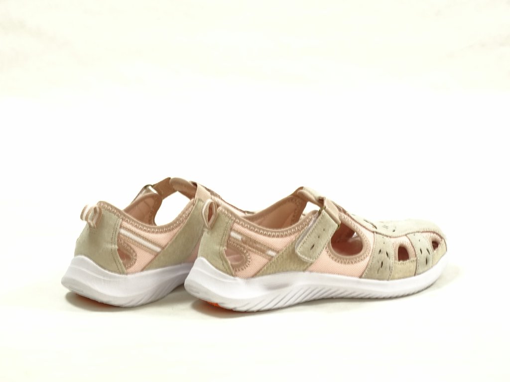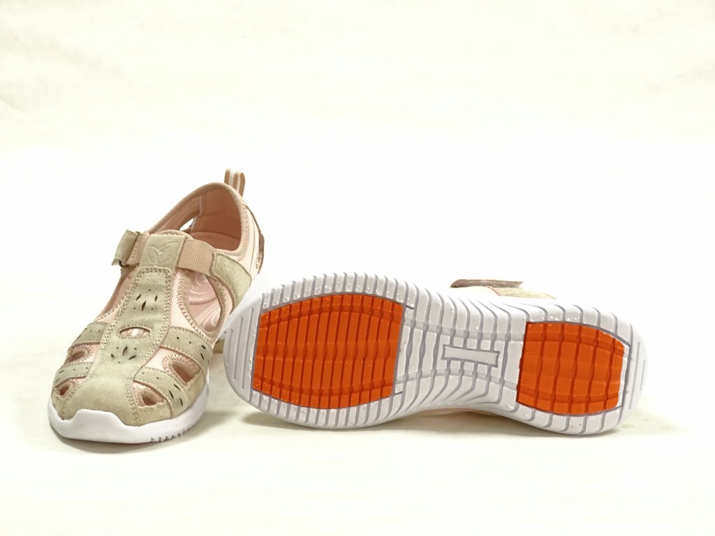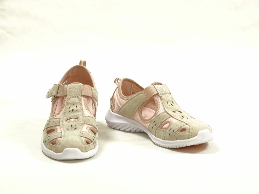 Obuv se zapíná na pásek, který je na suchý zip a vede přes nárt.