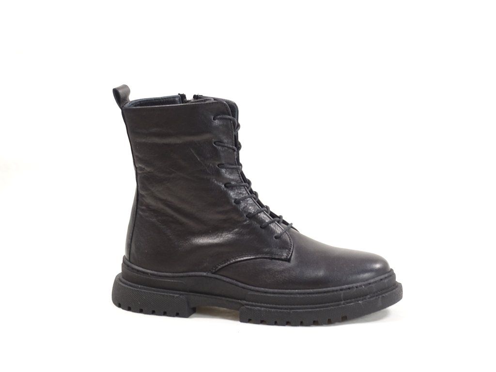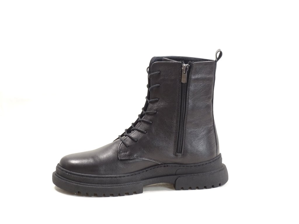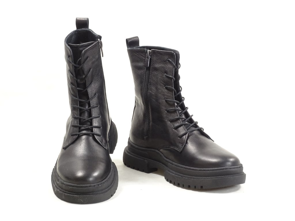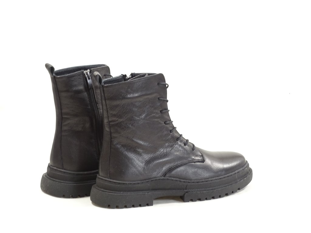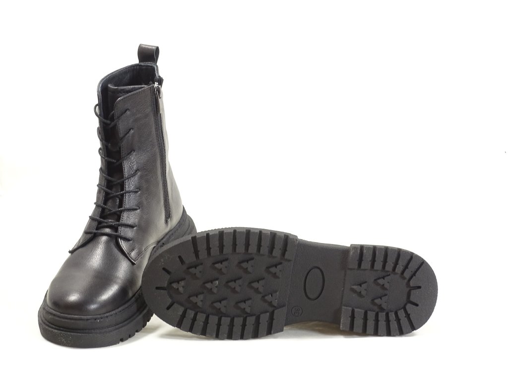 Dámská celoroční obuv se vyznačuje kombinací šněrování a praktického postranního zipu, což usnadňuje obutí i vyzutí. Tento model se pyšní moderním designem s kulatou špičkou, černou barvou a vysoce kvalitním svrškem z usně, zatímco podrážka z nesmekavé surové gumy zajišťuje bezpečný krok. Vyměkčená stélka a lehké zateplení přispívají k celodennímu pohodlí, díky čemuž je tato obuv ideální volbou pro chladnější dny.